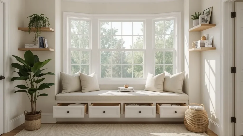 The inside of a bay window gives you endless design ideas. Many people build a bench seat in the bay window area. This creates a perfect spot for reading, resting, or enjoying a cup of tea. Some add storage under the bench to keep blankets, books, or home items.